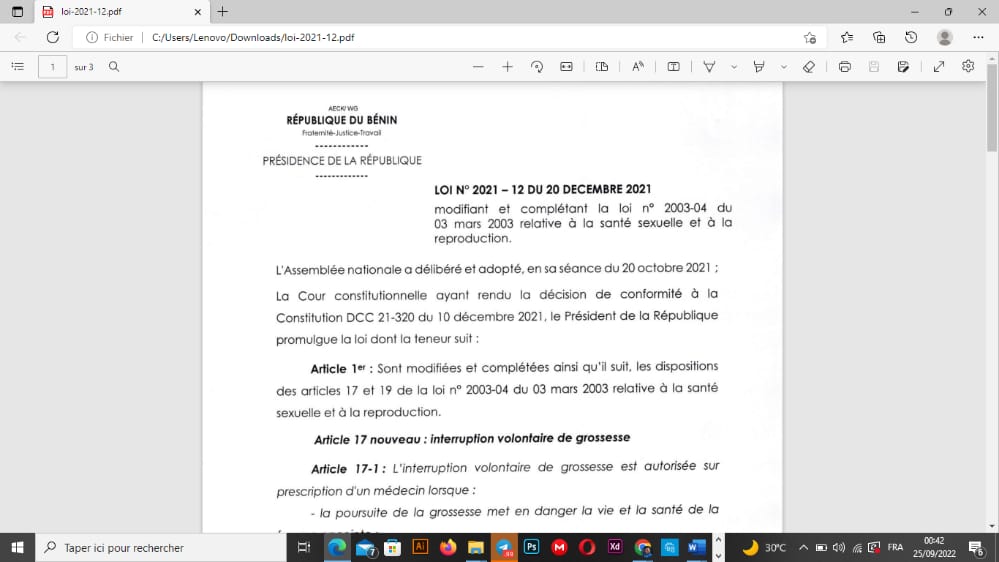 En ce sens que son effectivité « permettra d’ouvrir un dialogue franc, sûr et libre sur la question de l’interruption volontaire de grossesses au Bénin sans que nos discours ne soient confondus à de la publicité, encore moins à la promotion de l’Ivg en République du Bénin. L’Ivg n’est pas et ne doit pas être un moyen de contraception ».