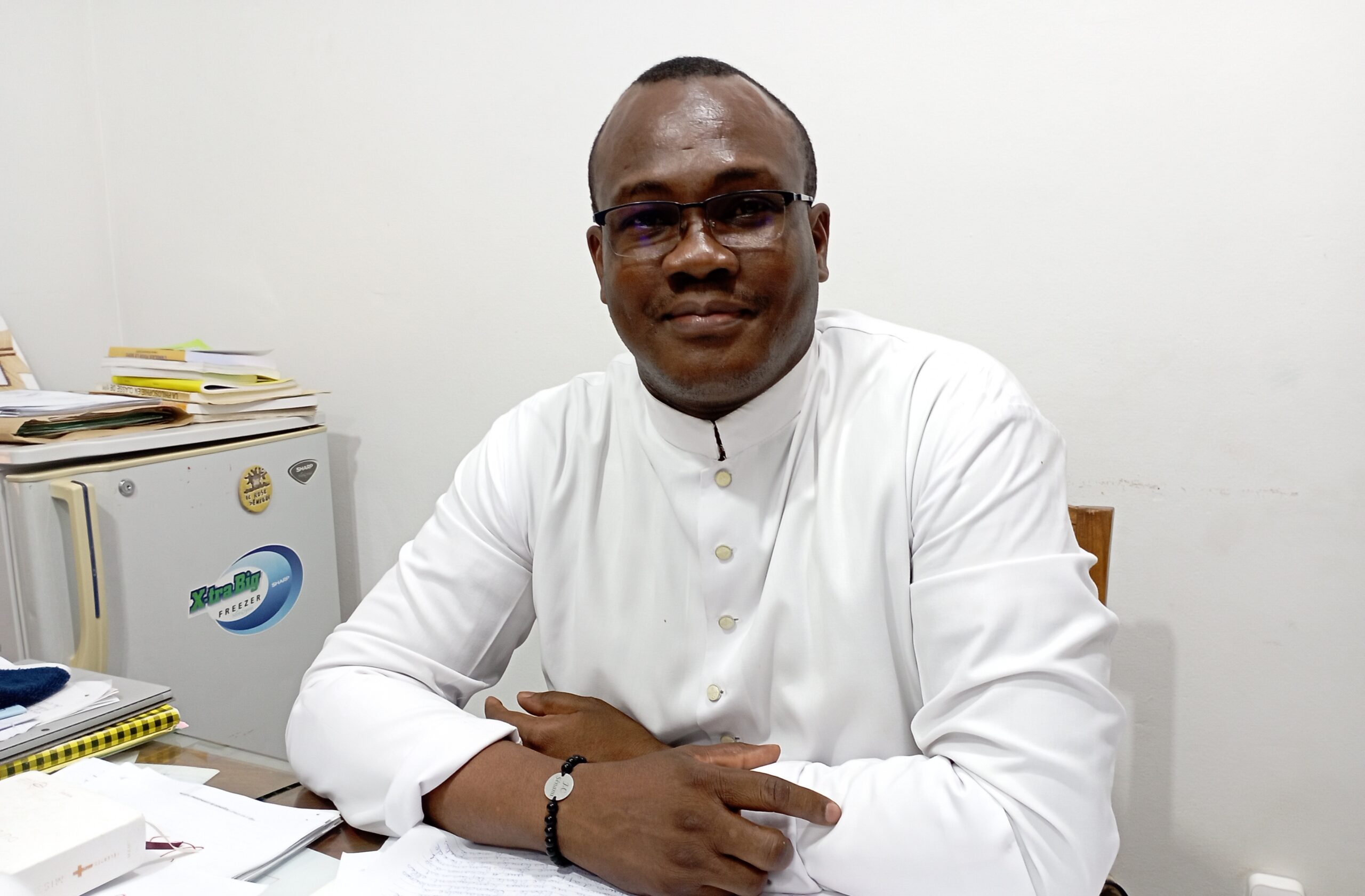 Mais au-delà de tout, j’ai vu un homme très sympa, qui est humain dans tout ce qu’il fait même quand il veut punir, il veut que tu perçoives ce qu’il veut. Donc, j’en garde quelqu’un qui aime le bien même dans la rigueur. Mes élèves me trouvent ici un peu rigoureux parce que, ils ne comprennent pas pourquoi. Je dis mais, le bien s’impose. Voilà comment moi je vois Monseigneur de Souza. Le bien, il faut l’imposer.
