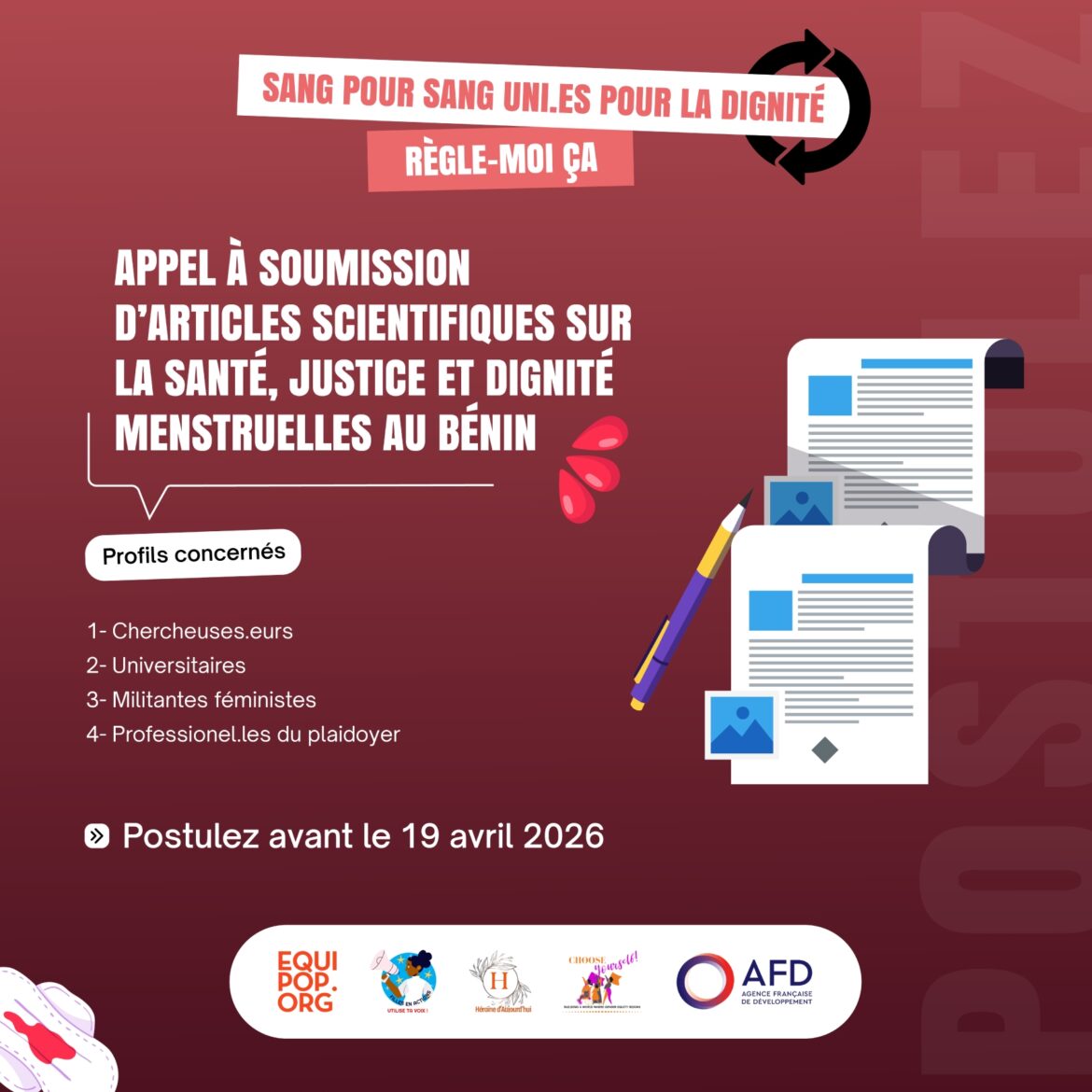 L’Ong Filles en actions lance un appel à soumission d’articles scientifiques portant sur la Santé, Dignité et Justice Menstruelle (Sdjm). Cette initiative s’inscrit dans le cadre du projet « Règle-moi …